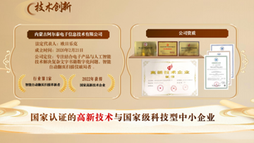 2020年我们成立了内蒙古阿尔泰电子信息技术有限公司,开始了从零到一的技术研发。我们克服了许多困难,仅用两年半的时间,就成为了国家高新技术企业。几年来,我们历经1200个日夜,从初代亚克力材质的雏型机到第六代机器人,所有的设备、电路、驱动、软件均由我们自主研发,真正做到了国产替代。公司拥有和正在受理中的专利达9项、软著十余项。